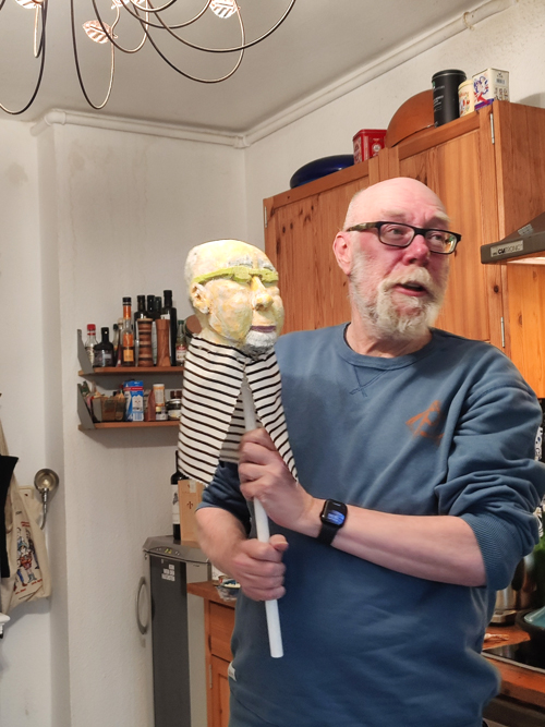 Mit Kettensäge, Klüpfel und Beitel.